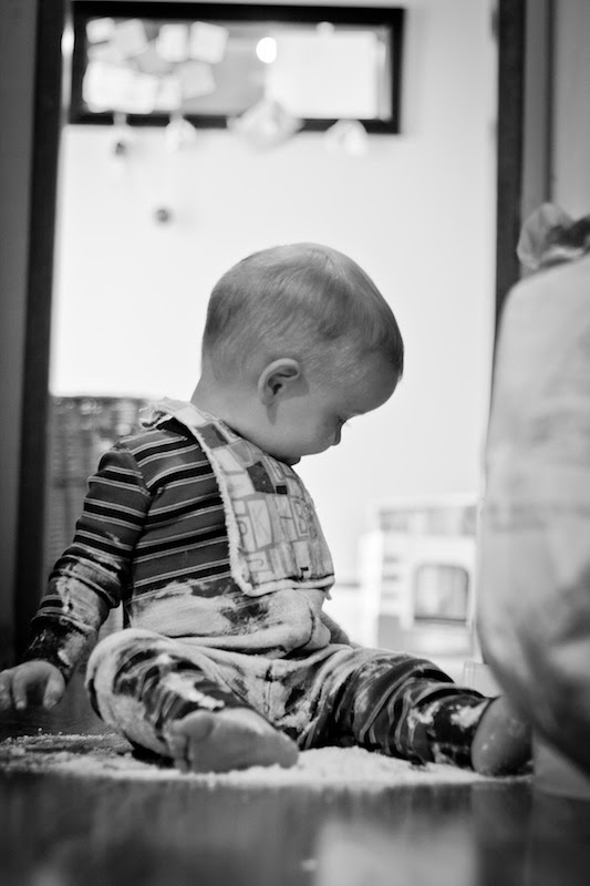 Knees folded up, fingers interlaced around shins, she rocks on her behind, sing-songs conversation. I shower. She talks. She wraps blue-blankie around her shoulders and squeezes him in a hug.